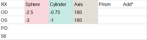 Other headings that your eyeglass prescription may have include